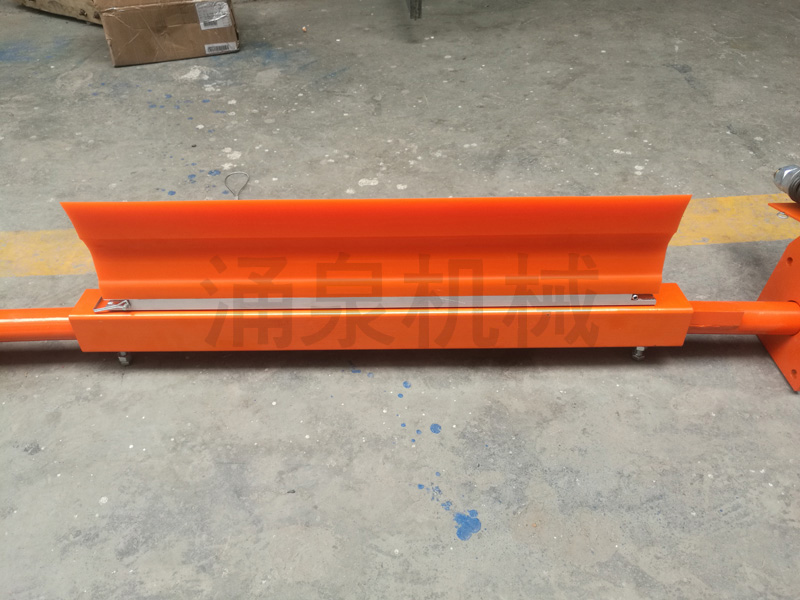 由此可見,清掃器在帶式輸送機上有著不可忽視的作用。我公司設計的 YQ-HPU 系列清掃器為頭道清掃器,安裝在帶式輸送機頭部滾筒,清掃器安裝寬度可根據現場情況任意伸縮。刀片材質為聚氨酯,具有耐磨損、抗腐蝕、不損傷皮帶、清掃干凈等優點,其特別的張緊裝置,設計合理,使用方便,可以在不停機的情況下將刀片和皮帶分離,以利于清掃刀口上的雜物。該系列清掃器安裝簡單,維護方便,深受用戶青睞。