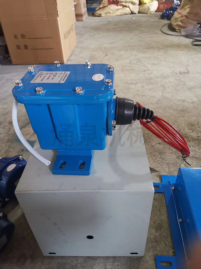 當膠帶運輸現場發生緊急事故時,拉動系在吊耳上的航空鋼絲繩,使機內的滑塊與開關作用,發出停機信號。松開鋼絲繩后,操作自鎖杠開關自動復位