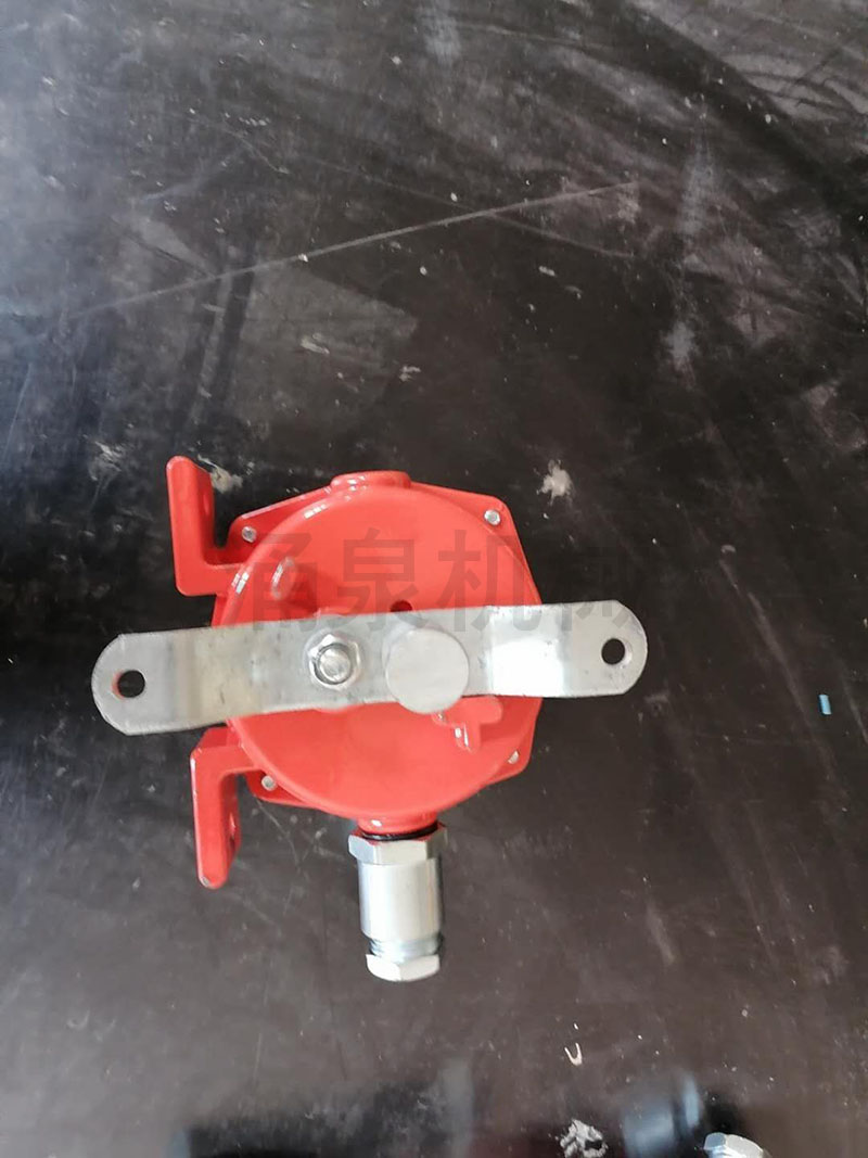 雙向拉繩開關(guān)安裝在輸送機(jī)兩側(cè),當(dāng)膠帶運(yùn)輸機(jī)現(xiàn)場緊急事故時(shí),在沿線任意位置牽動(dòng)系在掛耳上的鋼絲繩,迫使機(jī)內(nèi)凸輪轉(zhuǎn)動(dòng)而驅(qū)動(dòng)微機(jī)開關(guān)動(dòng)作,發(fā)出停機(jī)信號,達(dá)到停機(jī)效果,防止事故的擴(kuò)大。